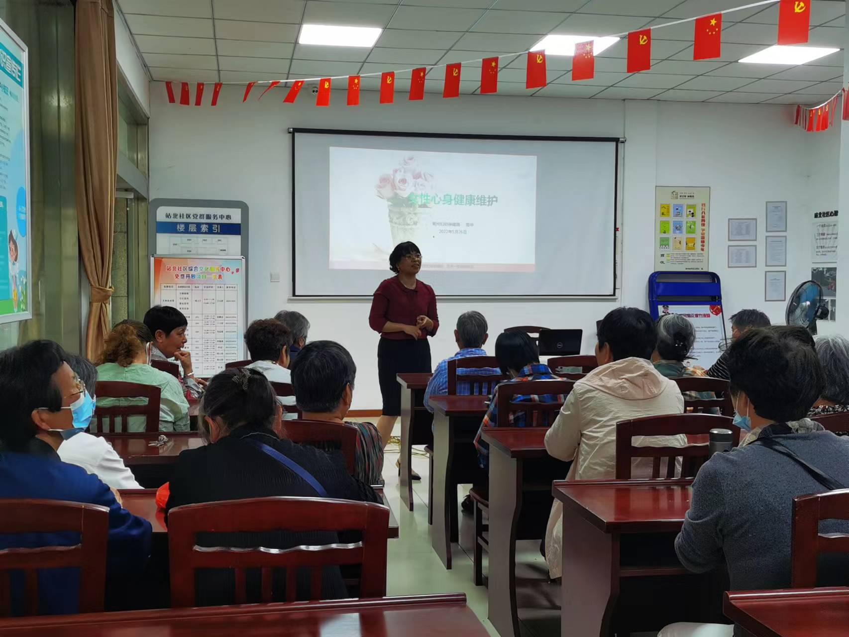 为增强妇女抵御重大疾病风险的能力,保障女性身心健康,在5月31日端午节来临之际站北社区邀请了妇幼保健医院的周华医生 “端午安康 女性身心健康”为主题的健康讲座。