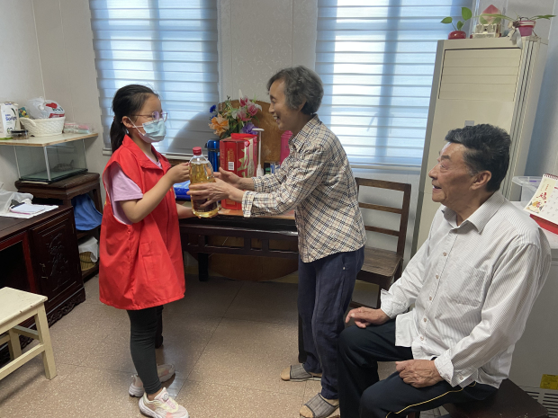 “奶奶,祝您端午节快乐!”刚一进门,小志愿者就送上甜甜的问候,并将带来的食用油、大米、粽子等慰问品送上,向老人送上最真诚的节日问候!有句话说:“这个世界没有大人,只有长皱了的小孩”,而此时此刻,赵奶奶就像一个高兴坏了的孩子,拉着小志愿者的手,嘴里一直念着“孩子,也祝你儿童节快乐!学习进步、快乐生活、茁壮成长!”淳朴的话语温暖着在场工作人员,浓浓的尊老爱幼之情令人感动。