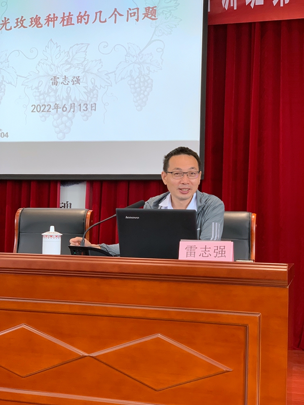 雷志强博士根据洛阳镇农民种植葡萄的实际情况,以“阳光玫瑰”这一品种为例,详细讲述了选择葡萄种植的优势与目前种植“阳光玫瑰”所存在的种植误区。他指出:种植“阳光玫瑰”应当注重农产品特色与品质,要把种植方向从种植大果向种植形体美、口味佳、香味浓的优质农产品进行转化。