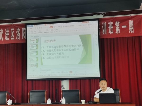 2022年6月13日,洛阳镇社区教育“科普惠农”葡萄培训在洛阳镇阳湖村委会议室开展,洛阳镇副镇长王小虎,洛阳镇农林站站长管国祥等相关领导参加了本次培训活动,此次培训邀请了江苏省农科院雷志强博士前来培训授课。