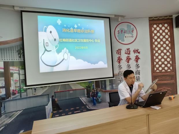 为了加强社区居民对胃肠道疾病的认识和预防,普及健康保健知识,6月16日下午,红梅街道学习苑红梅新村社区学习点邀请红梅街道社区服务中心李成医生为辖区居民开展“呵护胃肠健康,拥有幸福生活”消化道早癌诊治科普讲座。