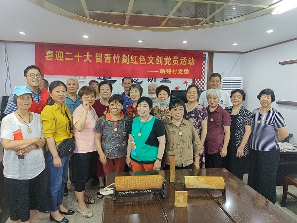 在“七一”建党节来临之际,新建村党委传承新时代红色基因,6月17日,特邀常州市钟楼区西艺坊残疾人创业中心郑建嵘老师,在村多功能活动室开展“喜迎二十大 留青竹刻红色文创党员活动”,党员、退役军人、村民积极参与其中。