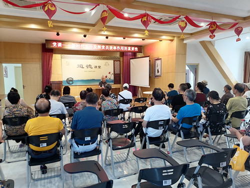 为迎接“七一”中国共产党建党日,6月22日下午,勤业二社区党委邀请社区老党员、退伍军人李永文为辖区广大党员开展以“新时代充分发挥党员表率作用重要性的学习活动”为主题的宣讲活动,40余名党员参加了此次活动。