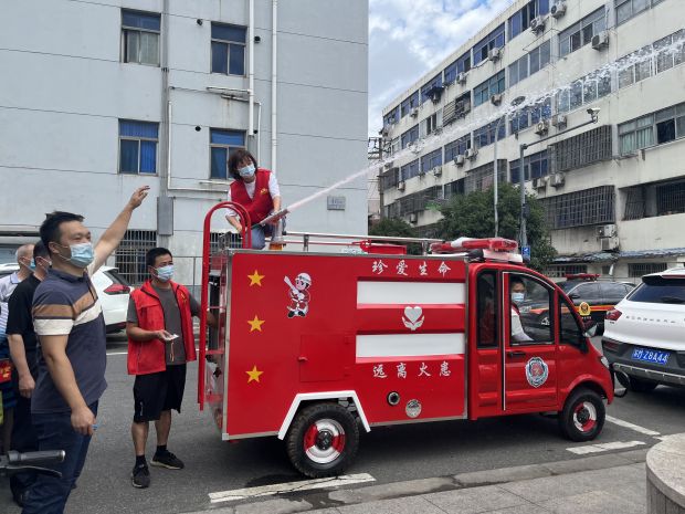 仪式结束后,消防志愿者为现场居民介绍了消防救援工作站的各类设施、消防发展史、消防知识抢答、VR体验等,并用“微型消防救援车”“灭火器”实地为居民演示了遇到火灾该怎么办及如何预防火灾的发生等消防安全常识。应急救护环节,七院的医护人员利用人体模演示急救步骤和操作手法向大家讲解应急救护理论知识,并组织居民上台进行实际的操作练习心肺复苏、包扎止血方法。通过互动的方式,增强了党员群众的消防安全意识和自救自护能力。
