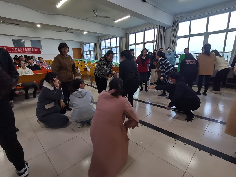 随后,王老师组织参会教师进行团辅活动现场体验。在“小鸡变凤凰”和“一起逃出地雷阵”活动中,老师们积极参与,活动现场气氛热烈,参与的老师们得到了足够的放松,并在王老师的引导下引发深入思考。