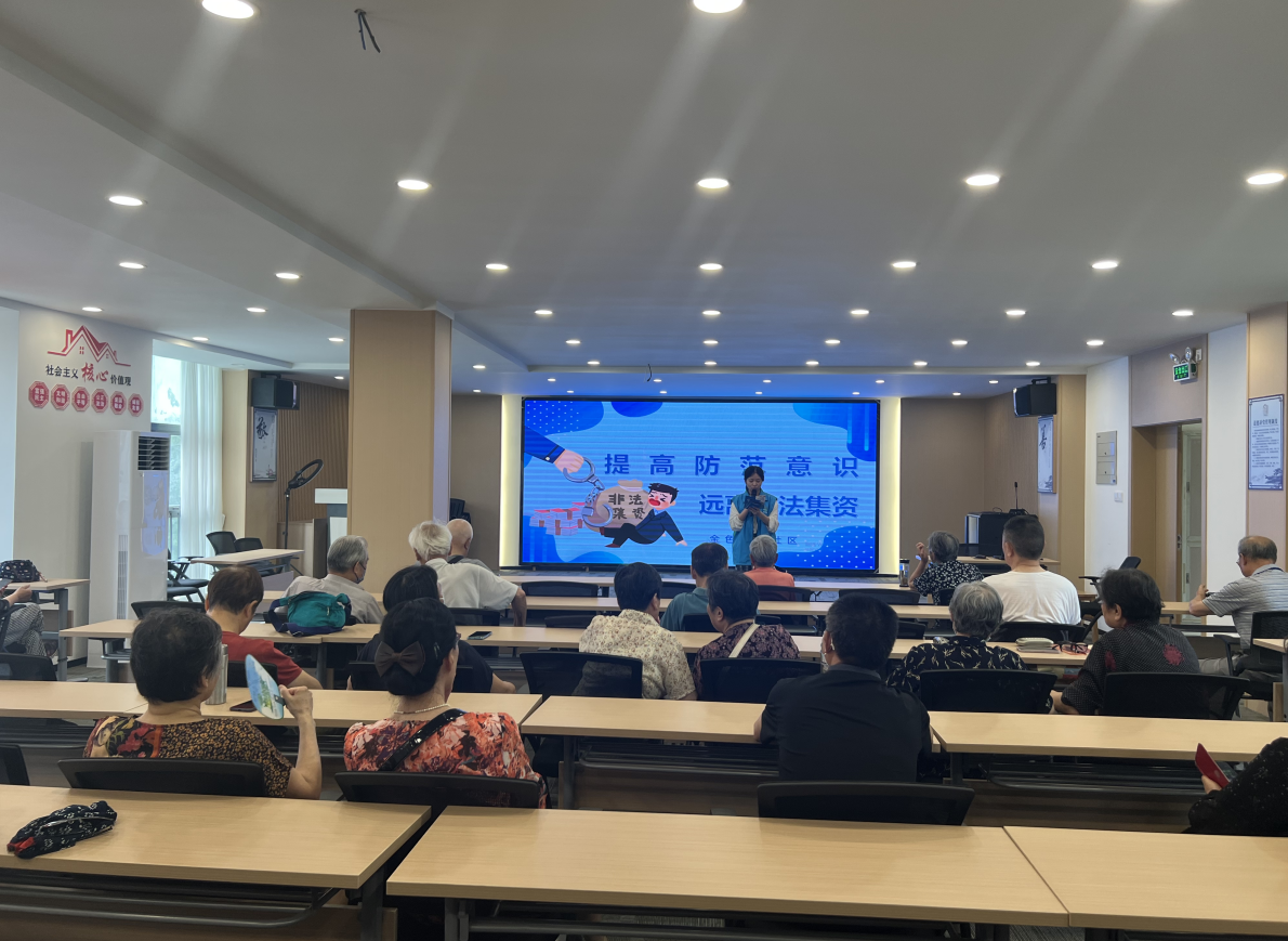为守护辖区居民财产安全,预防经济犯罪活动,提升群众识别非法集资的能力,2023年6月20日,金色新城社区居民学校开展防范非法集资宣传活动。