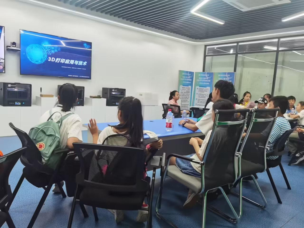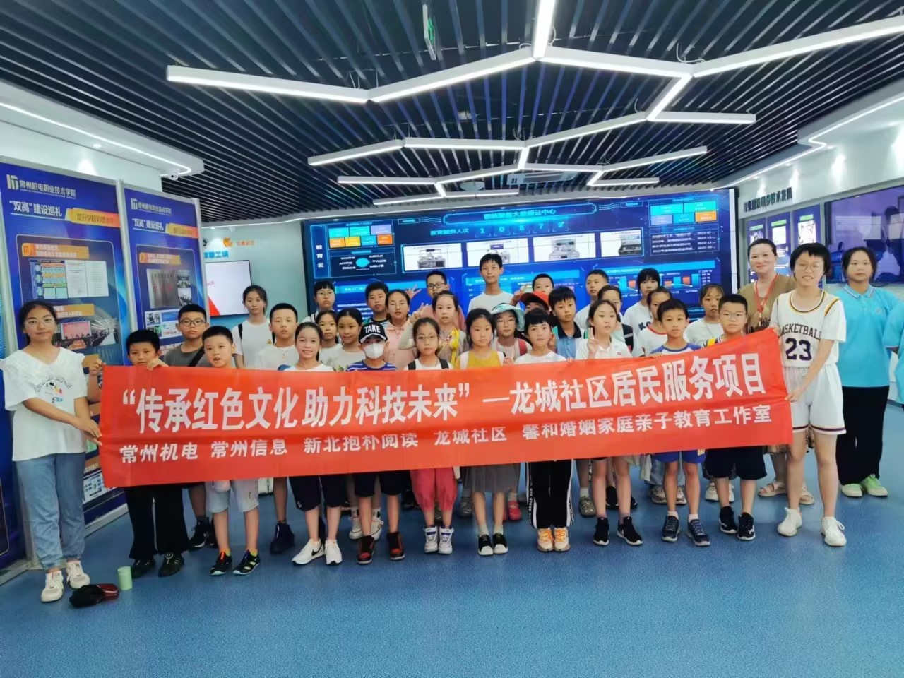 此项目大学城研学活动首次在常州机电职业技术学院,常州信息职业技术学院开展。来自龙城社区、新华实验小学的近80位中小学生、老师和社区志愿者参加活动。活动由学院副教授及大学志愿者带队,带领大家参观了大型工业机器人、小型机器人、无人机等表演;体验操作3D打印、物理电路实验、光刻机等高端科技设备。