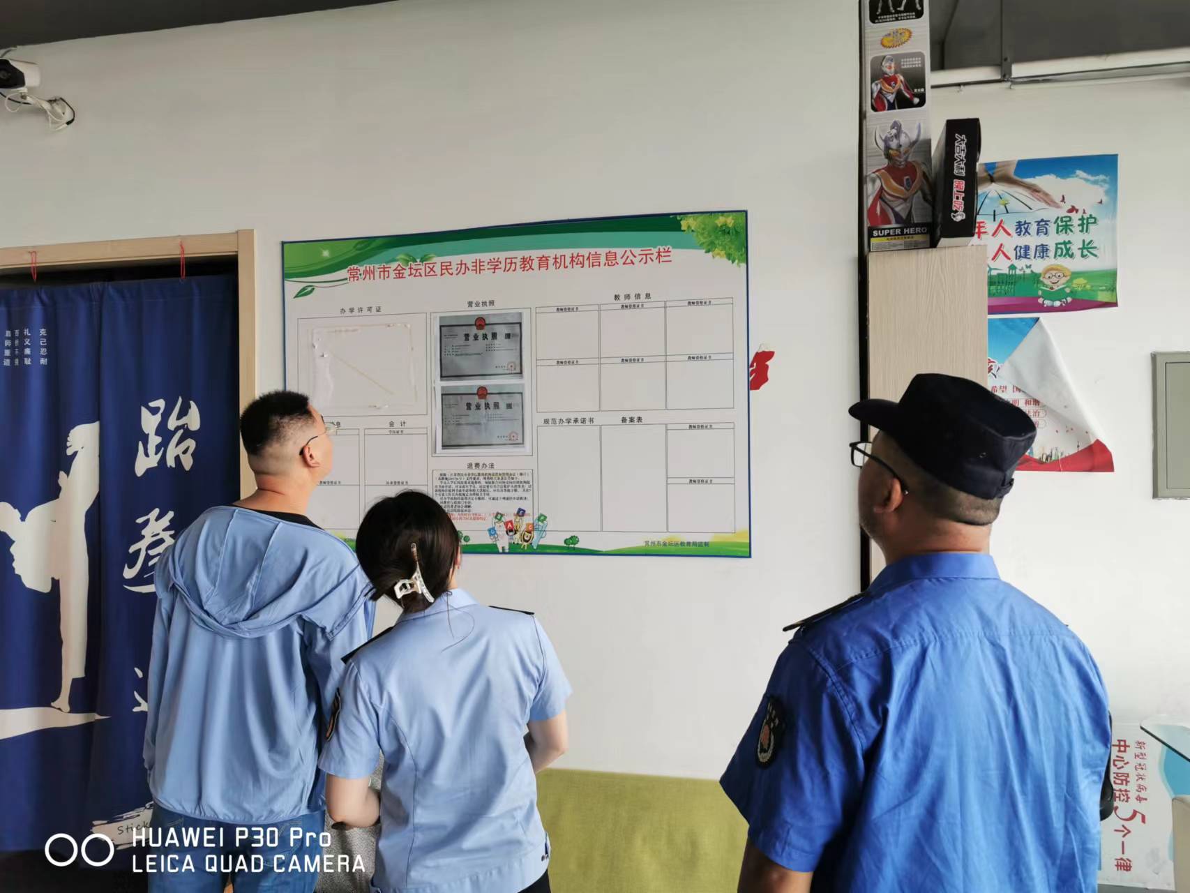 相关部门各司其职,通过察看现场、查阅台账、咨询了解等方式,督查了公示栏项目是否齐全、《营业执照》、收费标准是否悬挂在显眼处公示,托管机构是否存在“隐形变异”培训、是否存在违规或超范围经营、培训材料是否规范、是否存在违规收费、消防安全是否达标、广告及店招店牌是否合规等等情况。
