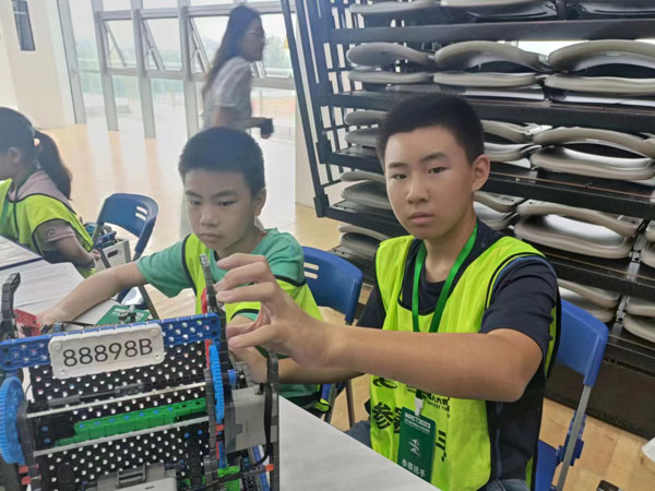 工作室组建的VEX初中组队伍和VEX小学组队伍分别在赛场上历经2天10场的资格赛、淘汰赛。在此过程中,队员们不断调整心态和自动程序,根据每场联队队友的不同机型,沟通策略,配合完成比赛,力求每场比赛获得胜利。