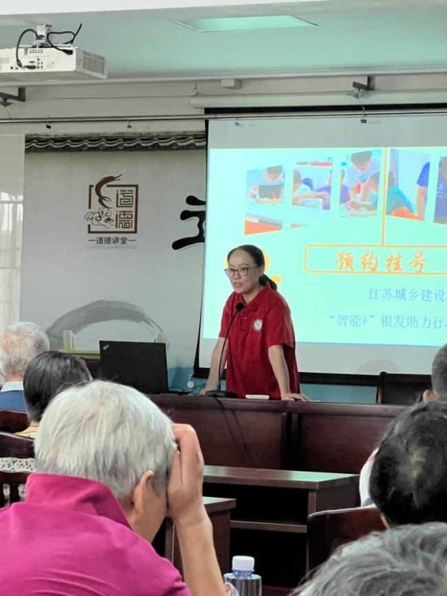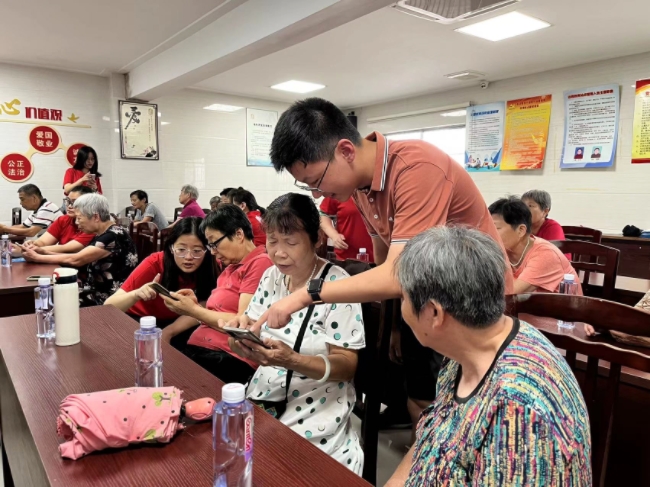 8月17日下午,江苏城乡建设职业学院的“智能生活+银发助力行动”项目团队受钟楼区新丰社区邀请,为社区老年居民们开展“线上挂号”操作方法指导教学活动。本次课主讲教师为我校基础部胡婕老师,助教为我校智慧助老团队师生、常州高中新生赵晋宇和新丰社区的工作人员黄则臣同志。