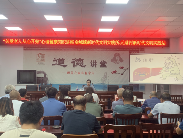 为了关注和关爱老年群体,提升老年人的心理健康水平和幸福感,8月17日,金城镇在元巷村组织开展了一场关爱老人心理健康的知识讲座活动,来自元巷村的数十位老年居民聆听了该讲座。
