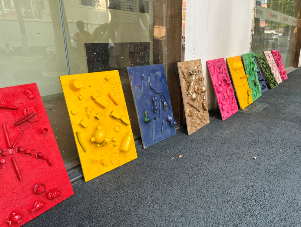 活动现场,孩子们带来了各种玩具、纸盒、空瓶、包装袋等废旧物品。李老师先挑选出一些不同形状的物品,教大家按形状将其简单分类,然后鼓励孩子们充分发挥想象力和创造力,根据自己的喜好,在木板底盘上把各种物品组合摆放成别致的造型,用热熔胶固定好,一幅幅风格鲜明的木板“画”便初见雏形。最后,李老师让大家挑选了颜色各异的喷漆进行上色,鲜艳的色彩完美覆盖板面,呈现出了极具现代感和创意美感的作品。后期,我们将在草堂路文化造景时把这些作品上墙展示,扮靓社区环境,让变废为宝的创新理念在辖区内广泛传播。