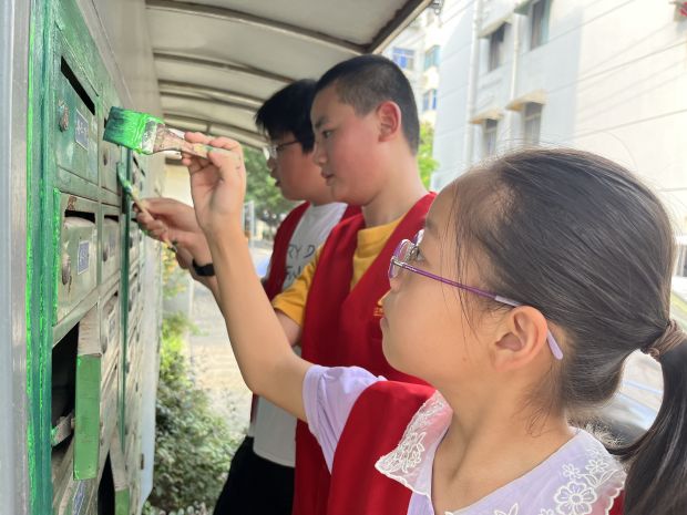 活动当天,同学们身穿志愿马甲,组成劳动组、美化组两队,在社区网格员的带领下,前往小区开始劳动。劳动组一组,小志愿者们分工明确、配合默契、干劲十足,打扫楼道、擦楼梯扶手,并着重对烟头、纸屑、塑料袋等白色垃圾进行清理,不放过一处卫生死角。美化组,同学们手持彩绘工具,调颜料、勾轮廓、涂色彩,有条不紊地进行创作,他们相互讨论、相互合作,拿着画笔忙得不亦乐乎……短短半天时间,一个个“展新”的信报箱“新鲜出炉”了。老旧的信箱在同学们的“杰作”下焕“新颜”,成为小区一道亮丽的风景,活动共清理小广告120余处,捡拾垃圾5袋,美化信报箱3块。