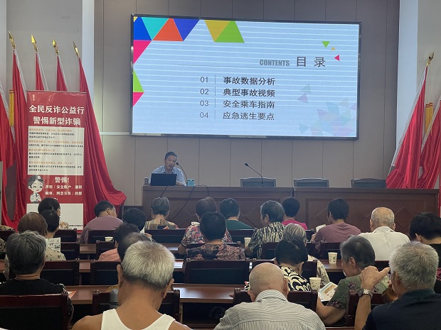 本次宣讲对象以老年群体为主,常州市公交蒋科长采用常州方言对安全教育片典型事故进行成因分析,面对面向老年人讲解公交乘车安全知识,提醒他们要自觉遵守交通安全法律法规,做到文明出行,平安回家。活动现场,社区工作人员通过交通安全宣传展牌、发放交通安全宣传材料等形式,进一步加深老年人对安全出行的认识。本次活动得到老年居民的一致好评,他们纷纷表示今后在行走和乘车时会时刻注意,保护自身安全。