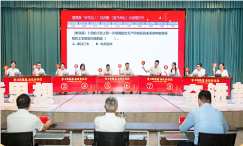 本次决赛采用个人赛形式,以习近平新时代中国特色社会主义思想、党的二十大精神等内容,设置必答题、抢答题、风险题、加赛题四个环节。比赛现场,台上选手们斗志昂扬、热情高涨,全神贯注、沉着应战,比分你追我赶、互不相让,展现出丰富的知识储备、过硬的理论素养和良好的精神风貌,上演了一场“手速”与“脑力”的精彩对决。