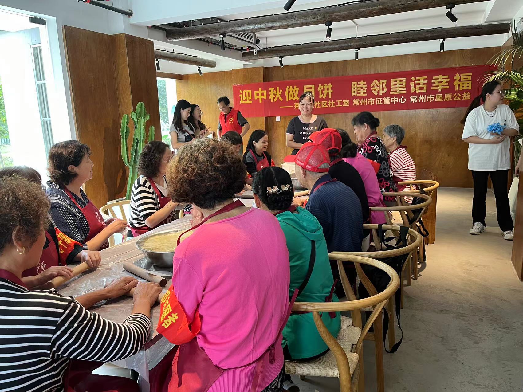 一年一度中秋佳节来临,为进一步弘扬中华传统文化,营造喜迎中秋的欢乐气氛,9月25日,荆川里社区社工室、荆川里社区新时代文明实践站携手常州市房屋征收与补偿管理中心党支部、常州市星原公益组织发展研究中心共同开展“我们的节日.中秋”活动,围绕“迎中秋做月饼,睦邻里话幸福”主题,一起做月饼送温暖、送政策促和谐。