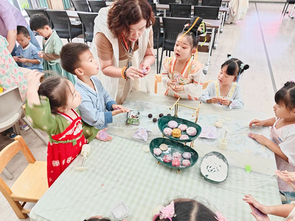 “搭弓射日而救民的后裔、碧海青天夜夜心的嫦娥,伐树不歇的吴刚和捣药不停的玉兔……”活动中,志愿者们用生动有趣的语言给孩子们讲解中秋节的来历,并带领孩子们共同学习与中秋节有关的儿歌、绘本。随后,孩子们在志愿者的带领下,体验点朱砂、穿汉服、制灯笼、做月饼等活动,幸福的笑容洋溢在每一位孩子的脸上。