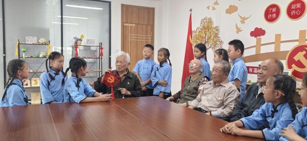 每年农历九月九日,是中华民族的传统节日——重阳节,尊老敬老是我们中华民族的传统美德,是中华民族强大的凝聚力和亲和力的体现,人老不失戎马志,余热生辉耀九重,为表达对退役老兵的崇敬和关爱,传递党和政府对广大退役军人的关怀,10月17日下午,花苑社区退役军人服务站联合恩悦社工开展“军徽永闪耀 重阳寄深情”花苑社区关爱老兵重阳敬老活动。本次活动特别邀请了中国邮政储蓄银行股份有限公司常州市经开区支行的工作人员、东方小学的学生们和花苑社区退役军人。