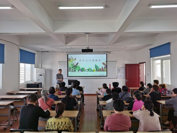 为了积极推动新时代“坚持积极老龄观,促进健康老龄化”发展理念融入老年教育全过程,10月24日上午,“健康经开行”活动走进常州经开区老年大学。此次活动的目的是提高老年群体对营养的认知,树立科学的饮食观念,以及倡导健康的生活方式。讲座的主要关注点是“老年人合理膳食”,由常州经开区社会事业局卫健科副主任医师、高级营养师汤晨主讲。常州经开区老年大学部分学员和周边社区的老年居民近四十人参加了本次讲座。