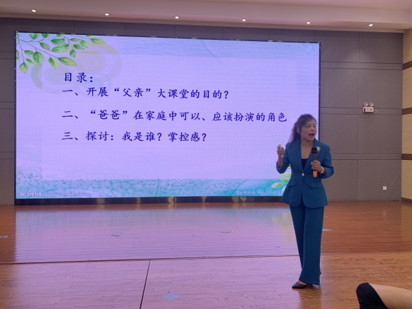 讲座伊始,庄老师给所有父亲家长抛出了是否跟家人好好说话?是否在孩子面前夸赞自己的另一半等十个问题,让所有家长进行自我对照。讲座中,庄老师用互动的方式,引用了大量的资料、案例和家长探讨责任的话题、讲授如何与家属、孩子相处的方法,引导父亲家长要勇于表达自己的感受,表达自己的情绪,用尊重、理解和包容创设良好的家庭氛围。家长们认真投入,获得较多的启发。