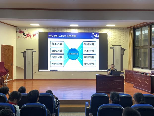 讲座伊始,舒医生通过一个故事让学生们认识到沟通的重要性。随后,舒医生从七个方面,通过故事案例、多媒体呈现、互动问答等方式,形象地向同学们阐述了人际交往的重要性、秘密、特点等,以及可能会面临的各类人际交往问题,详细指导同学们改善青少年人际关系,处理好学习生活中的人际关系。