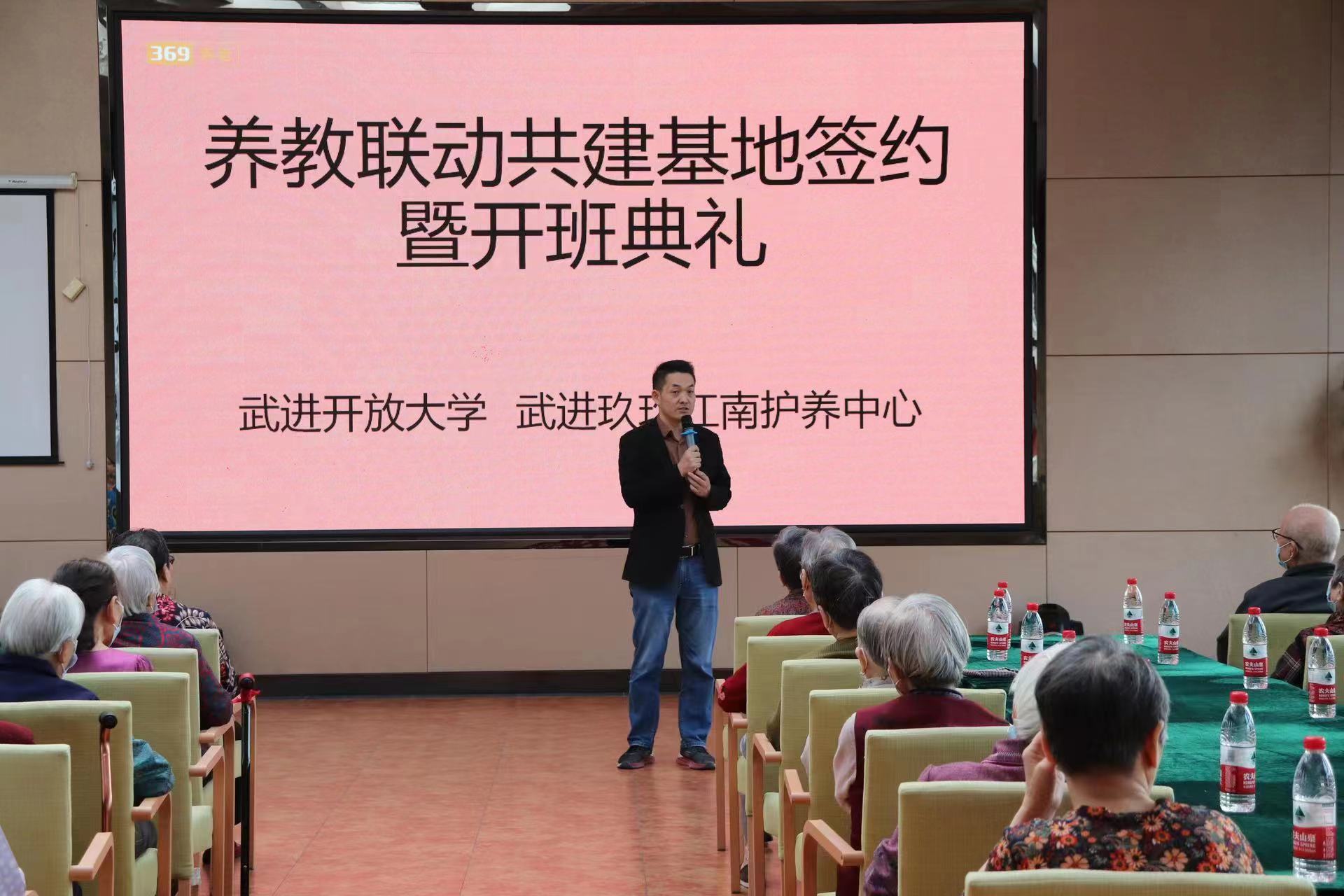 武进开放大学张晓松副校长指出,玖玖江南护养中心的养教联动基地,是在武进区教育局职社科领导的关心支持下,继我校成功与金东方共建后的第二个养教联动基地。学校将把与金东方合作7年的成功经验,嫁接到玖玖江南护养中心来,为玖玖江南店提供适合老年人的活动和健康养生讲座。