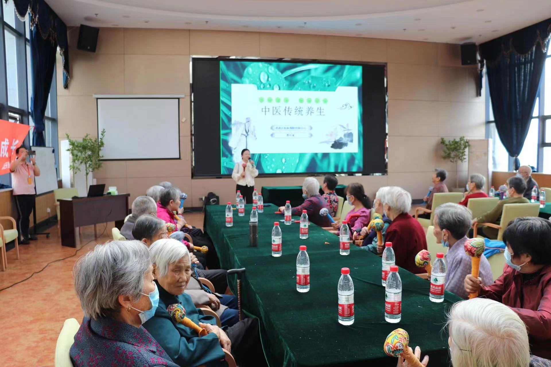 369养老集团曾总首先致辞,他介绍了369养老集团的创立史,是全国性养老服务连锁运营管理企业,玖玖江南养护中心是其中的一家四星级养老机构。