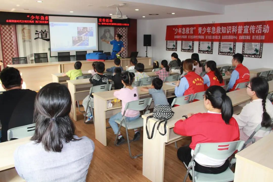 为进一步普及应急救护知识技能,增强青少年在突发事件中的急救意识和互救能力,11月5日,金城镇联合金坛急救中心在西门社区组织开展“少年急救官”——青少年急救知识科普宣传活动。