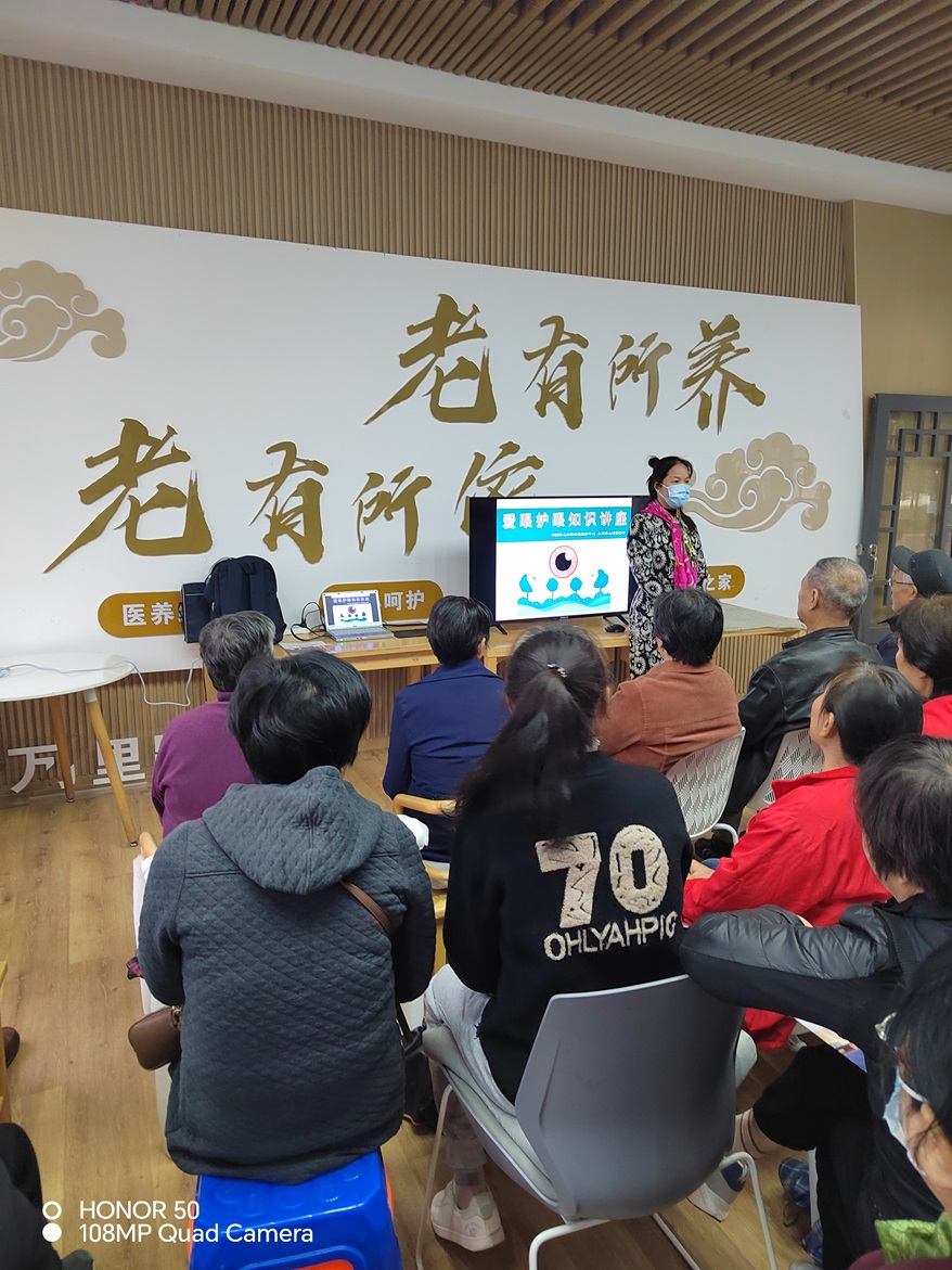 为了进一步关爱辖区老人的眼部健康,上兴镇社区教育中心于2023年11月9日上午邀请高级验光师潘云飞女士为上沛居委会辖区开展老年人“爱眼、护眼”科普知识讲座,近50名社区居民参加了本次活动。