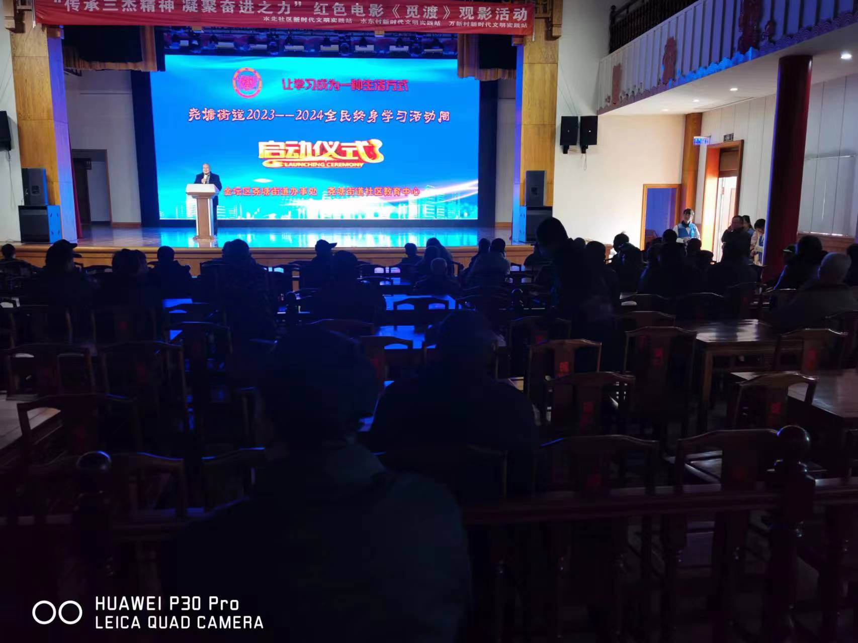 2023年11月18日,尧塘街道社区教育中心在坤凤戏院道举办了2023全民终身学习活动周启动仪式暨《觅渡》观影活动,来自机关、学校、社区的二百多名居民参加了活动。
