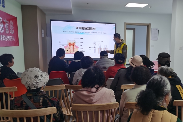 活动中,志愿服务团队为居民进行免费测血压、口腔检查等活动,同时耐心地分析大家的牙齿状况和询问居民的口腔问题。另外,为普及居民的牙齿防治知识,中意社区还集中开展关爱口腔健康知识讲座,向大家介绍常见口腔问题及其防治问题,居民们认真听讲,学到了许多口腔健康小常识。