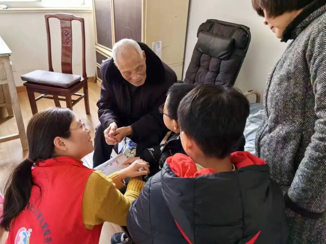 另一队小雷锋们跟着志愿者寻访老党员,上门看望老人,用实际行动关爱和照顾老人。孩子们陪伴老爷爷拉家常,询问老爷爷的身体健康状况、衣食起居等情况,听老爷爷讲述自己生活的过往和当年在工作岗位上的励志奋斗故事。孩子们还为老爷爷 送上了自己的绘画作品,祝愿老人笑口常开、健康长寿。