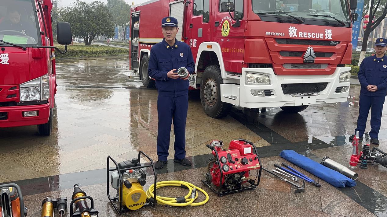 培训过程中,消防员详细介绍了救援过程中所使用到的装备,重点展示了消防水带连接水枪的使用方法,对如何正确使用灭火器进行了详细讲解与示范,并发放消防安全宣传册,宣传火灾防范消防安全常识。