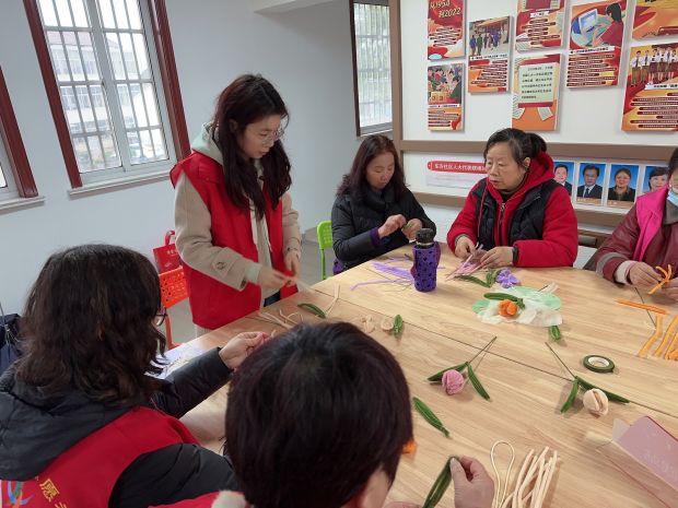 常州经开区戚墅堰街道圩墩社区开展“巾帼暖心迎三八 巧手做花绽芳华”主题活动