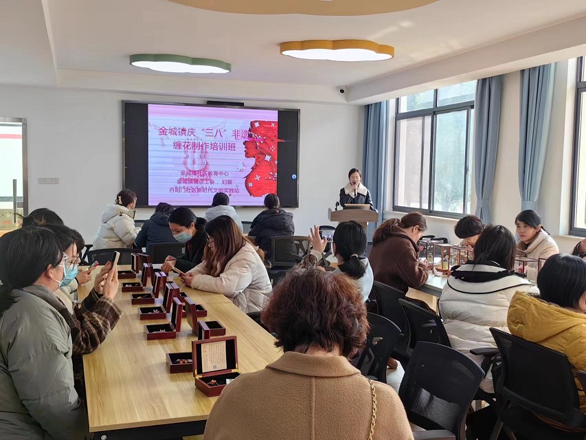 阳春三月,春暖花开。在这个喜庆日子里迎来了第114个国际“三八”妇女节,3月7日上午,金城镇社区教育中心在丹阳门社区组织开展了一场精致典雅、古色古香的非遗缠花制作培训活动,金城镇党委委员、组织委员张卓琲出席活动,辖内30余名女员工参加本次培训活动。