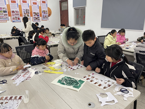 本次创意手工培训由唐丽副教授团队的曹光清老师担任主讲,内容是纸版画,它是版画的一种形式,它的魅力在于简单易学而又深奥多变。曹老师先给大家播放了一段有关纸版画的视频,让孩子们对纸版画有一个初步认识。在纸版画的制版过程中,学生们展现出了极高的热情和惊人耐心,孩子们专心致志,把纸版画鱼的各个部分的零件细致的一片一片的剪下来。剪好后,再根据曹老师传授的经验,把鱼的结构小心细致的用白乳胶分层次粘贴起来,组合成一幅凹凸的底板。最后再滚上油墨,用马莲或木蘑菇等工具进行磨拓印刷,揭开后就获得一张独具魅力的纸版画作品。通过今天的学习和体验,孩子们了解了版画是介于手工和绘画之间的一个画种,因为需要制版和印版两个工序才能完成一幅画面。对于新的画种,孩子们充满了好奇,从设计图案、制作底板、上色印刷,每一个环节都让他们兴奋不已。这一学期版画的开设,旨在培养学生们的艺术素养和手工能力,同时也为他们提供了一个发挥想象力和创造力的平台。希望他们能爱上版画,并将版画这一艺术形式用于自己的艺术创作中,也为辖区的艺术教育增添了一笔亮丽的色彩。