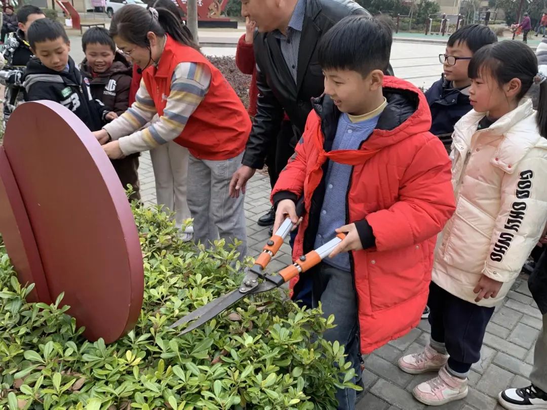 随后,大家排好队伍,带上工具,跟随社工一同走进户外的绿色世界。金盛物业管理有限公司负责园林的王师傅宛如树木的“代言人”,向孩子和家长们介绍了社区内各种树木的特点、生长习性以及维护方法,孩子和家长们听得津津有味,不时提出问题,与王师傅互动,仿佛在进行一场关于绿色生命的热烈探讨。孩子们还尝试用剪刀修剪树木,感受了一回“小树医”的工作。