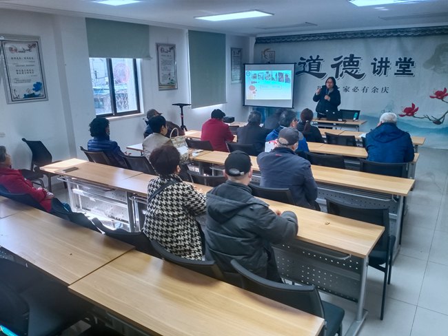 课程分为两部分:第一部分主要是从整体给老年居民科普30个微课内容,第二部分根据不同社区需求播放选定的一个微课视频,并指导老年居民在智能手机上进行实操。课程内容深受城乡居民喜爱,他们说这是非常实用的课程。