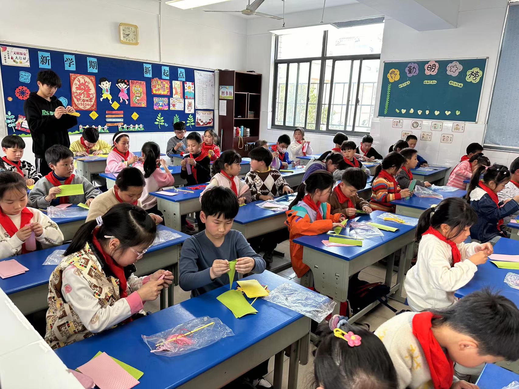 新民村委举办了一场别开生面的活动,邀请到了“江云纸艺工作室”的创始人李江云老师,为勤业小学的学生带来了一场“趣味折纸,巧手生花”的荷花灯制作活动。