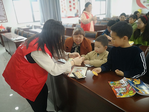 随后,在志愿者的指导下,孩子们积极发挥想象力和创造力,利用废品纸盒制作环保书签,剪下印花,折叠粘贴,用灵巧的双手制作出一张张个性鲜明的书签。孩子们纷纷表示,要借着小小的书签,激励自己在生活中读书,在阅读中成长。