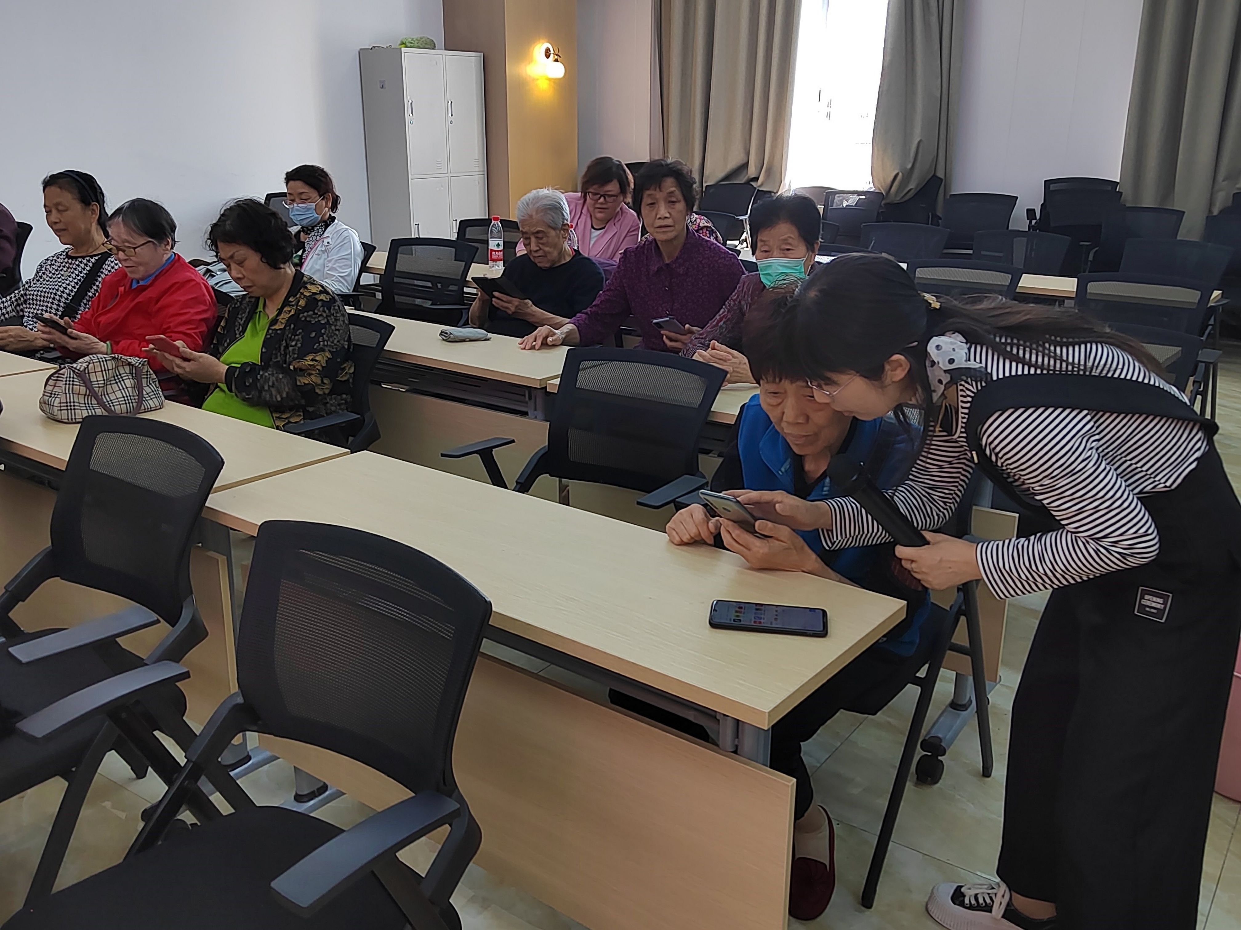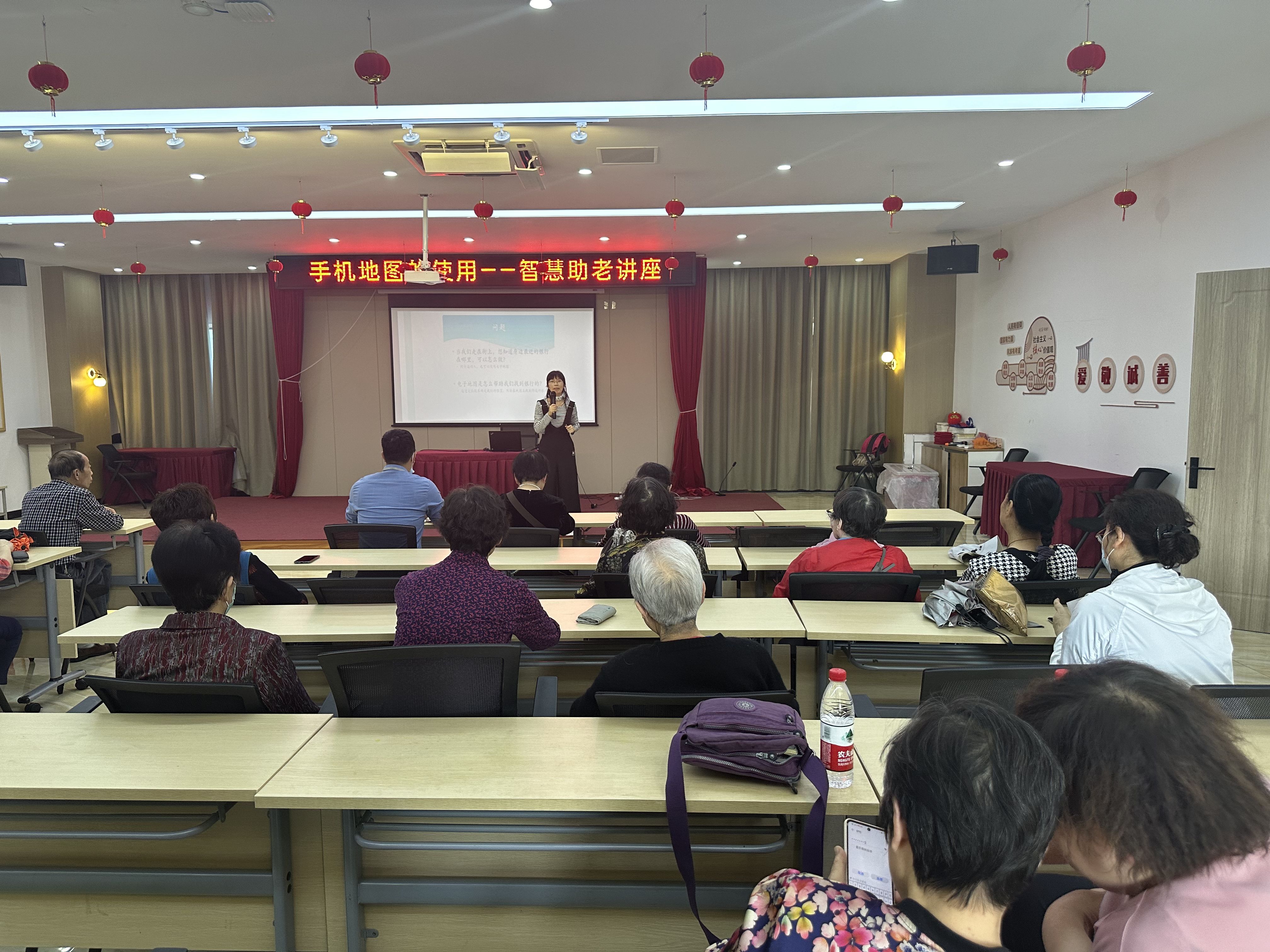 为帮助辖区内的老年人更好的享受信息化发展成果。5月14日下午,南大街街道社区教育中心东头村社区居民学校成功举办了智慧助老活动,邀请了钟楼区“智慧助老”讲师团的吕娇老师为辖区内的老人们带来了一场别开生面的高德地图使用教学课程。