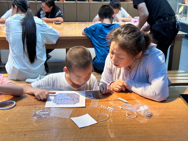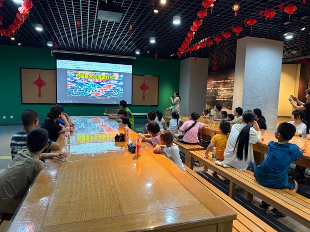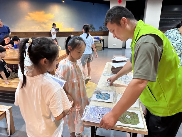 为弘扬中华优秀传统文化,播撒非遗传承的种子,2025年7月9日下午,河苑社区关工委联合戚墅堰街道文化站、戚墅堰街道社区教育中心、河苑社区退役军人服务站在常州市圩墩遗址博物馆圩墩“博悟”课堂开展非遗系列研学活动——“指尖进修”非遗宋锦珍珠画DIY活动。