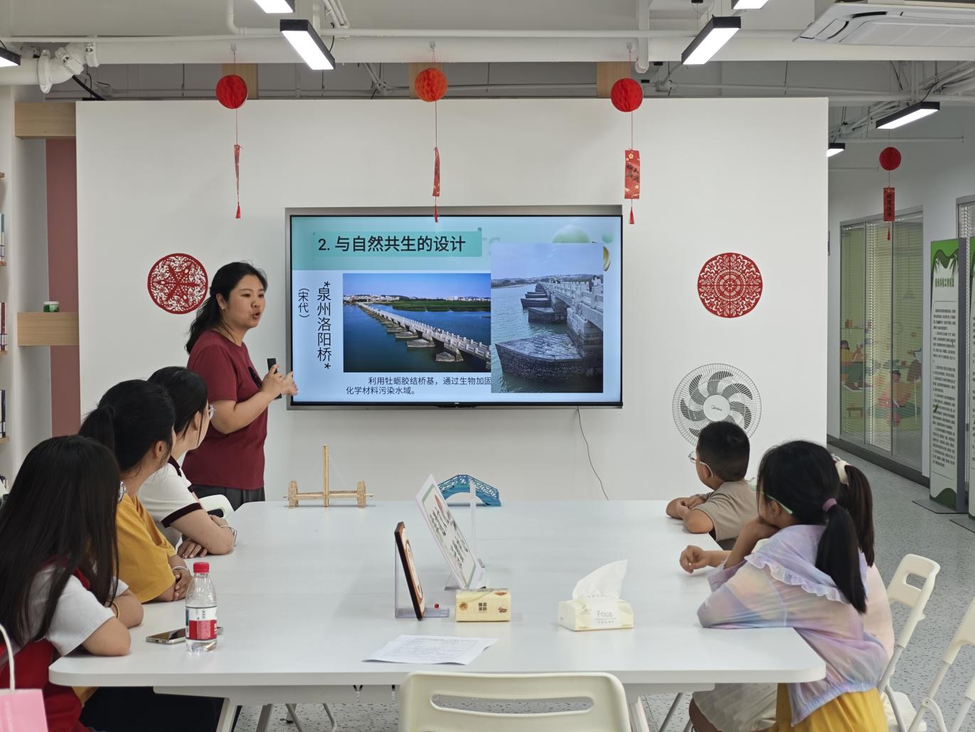 中国被称为桥的国度,自古桥梁建设中就蕴含着深厚的环保理念,包括如何选址减少对生态环境的破坏,采用环保材料降低污染等,通过具体桥梁案例的介绍,夏令营的孩子们可以认识到环保与生活的紧密联系。同时,孩子们还积极分享了自己对环保桥梁的理解和见解,有的从桥梁的结构设计角度阐述如何减少资源浪费,有的则从材料选择上探讨如何降低对环境的影响。除此之外,陆老师还展示了3D打印的桥模型,并分享了3D打印技术在桥建设方面的实用案例。