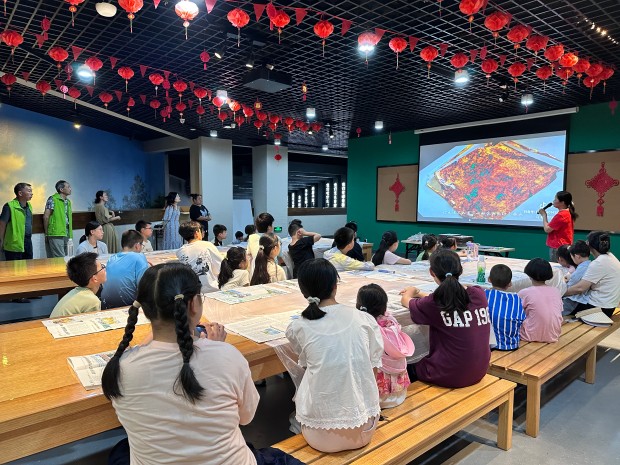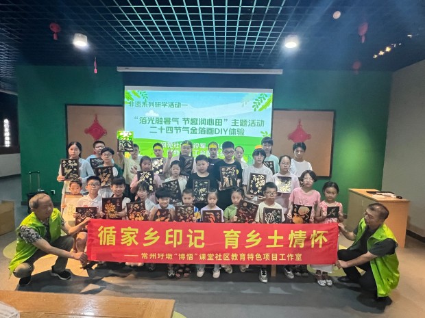 文化无声却承载着一个民族的记忆与灵魂,为弘扬中华优秀传统文化,积极推动辖区未成年人做非物质文化遗产的传承者,2025年7月16日下午,常州圩墩“博悟”课堂联合河苑社区在常州市圩墩遗址博物馆开展非遗系列研学活动——“箔光融暑气 节趣润心田”之二十四节气金箔画DIY体验活动。