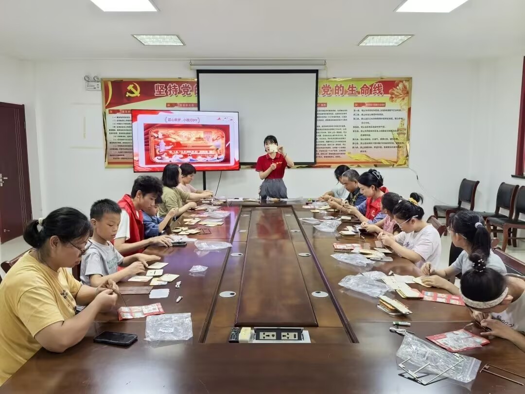 红色主题小夜灯DIY环节,在志愿者的引导下,大家围坐桌前,用准备好的红色卡纸、金色贴片、LED灯珠,小心翼翼地创作起来。孩子们专注地勾勒五角星轮廓,邻里合作粘贴“八一”字样,当一盏盏凝聚着手温的小夜灯亮起,暖黄的光透过红色纹样映在每个人脸上,现场充满了温情与敬意。“这灯光,就像先辈的精神一直在照耀我们。”“亲手制作‘致敬’的感觉,特别有意义!”大家由衷感叹。