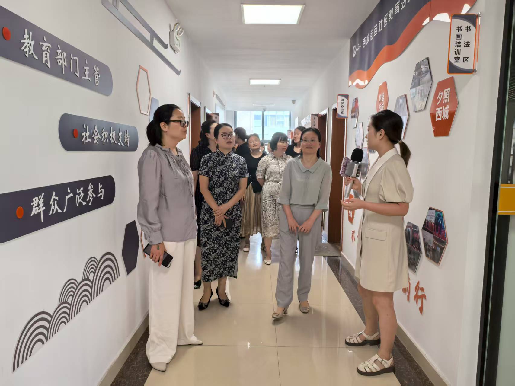 调研中,王丹详细介绍了“一体两翼”模式的实践成效。“一体”即社区党群服务中心,通过固定日开展家庭教育讲座、非遗亲子课堂、阅读分享会等活动,为家长传授育儿方法、搭建交流平台;“一翼”妇女儿童之家依托本土社会组织,全年组织亲子手工、节气主题活动等超110场,惠及200户家庭;“另一翼”西城街道社区教育中心,不仅开设书画、旗袍、智能设备培训等8类特色课程,帮助300余位老年家长掌握智能技能,更连续5年开办“家门口”爱心暑托班,每年服务30余名儿童,解决家长暑期照护难题。