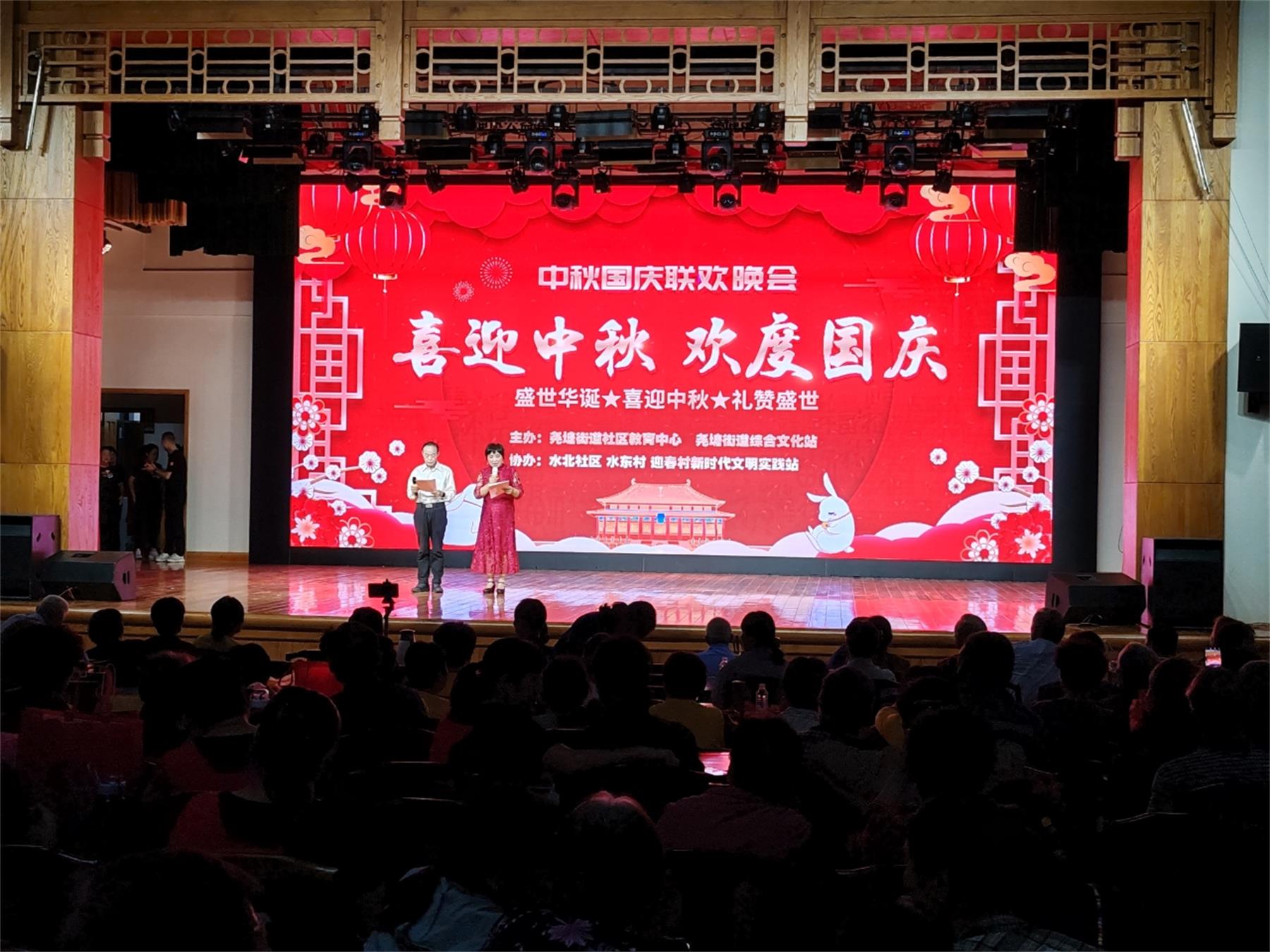 金秋送爽,丹桂飘香。为庆祝中华人民共和国成立74周年,喜迎传统中秋佳节,丰富社区居民的精神文化生活,9月28日晚,水北文化站灯火通明,欢声雷动,“喜迎国庆,情满中秋”文艺联欢晚会在这里隆重上演。辖区居民、文艺爱好者欢聚一堂,用精彩的节目和饱满的热情,共同献上对祖国的深情祝福和对团圆佳节的美好期盼。