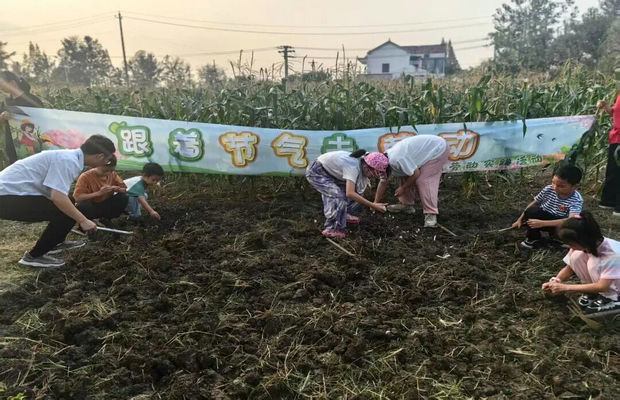 午后阳光洒在田间地头,孩子们拿起小锄头,化身“小农人”走向黄金农学园的菜地。“蒜瓣要尖头朝上,插进土里三分之一深,间隔一个手掌的距离……”农业老师耐心地讲解着大蒜种植的要点。孩子们小心翼翼地将大蒜插进土里,随后仔细地覆土。“小蒜瓣,快长大,明年我来收获你!”一个孩子一边轻轻拍实土壤,一边对着刚种下的大蒜喃喃自语。通过亲身体验农事劳作,他们更加深刻地理解了“寒露到,人渐忙”的农事规律。