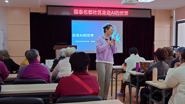 11月27日,江苏城乡建设职业学院凌晓琴老师在国泰名都社区开展《走近 AI 的世界》主题课程,让居民近距离感受AI 科技魅力,收获一致好评。