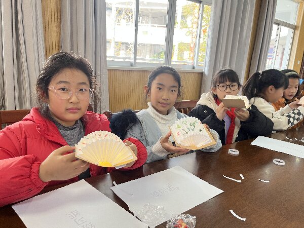 在“时光故事会”环节,直溪社区党员志愿者用生动的语言讲述数学大师华罗庚的励志人生,从其求真务实的治学态度到心系家国的赤子情怀,深深感染了在场的每一位学生。在“诗词雅韵”环节,志愿者挑选《静夜思》《满江红》等经典诗作,通过逐篇赏析、齐声诵读等方式,引导学生感受汉字韵律之美、体悟传统文化之深。在“巧手工坊”环节,志愿者讲解、示范书本小夜灯的制作要点,并指导学生在协作互助中完成裁剪、拼接、组装等操作,激发了学生的创造能力。